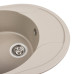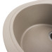 Overall sink dimensions — 580 × 470 mm. The main round bowl with a diameter of 385–390 mm and depth of 180–185 mm easily accommodates large cookware — from tall pots and pans to baking trays and cutting boards. The dedicated drying wing speeds up the process: dishes drain directly on the wing, keeping the countertop dry and clutter-free. Key advantages of the VALESO 5847 ONYX “Titan” model: