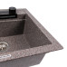 The sink is made of quartz composite (80% natural quartz and 20% polymer resin). The material forms a dense, homogeneous structure resistant to everyday loads, temperature fluctuations, and sunlight exposure. The “matte mix” finish looks neutral and versatile, easily matching both light stone and dark textured countertops. The top inset installation ensures precise fitting into the prepared cut-out and a clean overall appearance.
