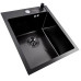 The VALESO Handmade 40×50 cm PVD black sink with decor is a practical solution for compact kitchens where efficient workspace organization is essential. The well-thought-out bowl geometry ensures comfortable use even with limited countertop space, while a tight seal with the countertop is achieved thanks to the mounting kit included in the package.