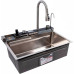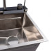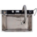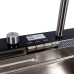 “Waterfall” mode — built-in wide spout on the front wall of the control panel creates a smooth and uniform water flow, suitable for washing vegetables, fruits and defrosting products. Multifunctional faucet with pull-out spout allows easy rinsing of every section of the bowl, including the ability to switch water supply modes – regular flow, shower jet, powerful cutter. Also on the right there is a separate tap for drinking water, compatible with filtering systems, and on the left you can rinse cups, glasses and similar dishes using the built-in rinser. There is also a push-type dispenser for detergent and a drain valve regulator on the panel.