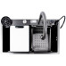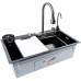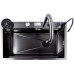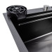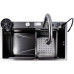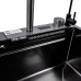 - The set also includes a separate black drinking water tap, allowing connection to a filtration system and providing purified water directly from the sink area without installing additional devices on the countertop. A cup rinser is integrated into the left corner of the sink.