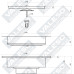 The siphon top is intended for Valeso Handmade sinks with a 110×110 mm square drain opening. Made of heat- and moisture-resistant plastic combined with SUS 201 stainless steel featuring a black graphite PVD coating (matching the sink color).