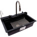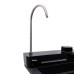 Панель кухонної станції виконана з міцного чорного скла, а вибір водозабірної точки здійснюється легким натисканням відповідної кнопки. Налаштування параметрів потоку води на змішувач здійснюється поворотним регулятором зліва від гусака.