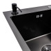 Основа мийки виготовлена з нержавіючої сталі SUS201. Товщина металу становить 0,8 мм для стінок чаші та крила, а верхній обідок посилений до 3 мм, що позитивно впливає на жорсткість конструкції. Поверхня має фактурний декор у вигляді сот із PVD-покриттям чорного графітового відтінку. Такий рельєф не лише надає мийці виразного зовнішнього вигляду, а й додатково зміцнює метал, зменшуючи ймовірність появи дрібних подряпин під час активної експлуатації. Декоративне покриття нанесене на всі елементи зі сталі товщиною 0,8 мм, а верхній обідок товщиною 3 мм із шліфованою обробкою формує акуратний і завершений контур виробу.