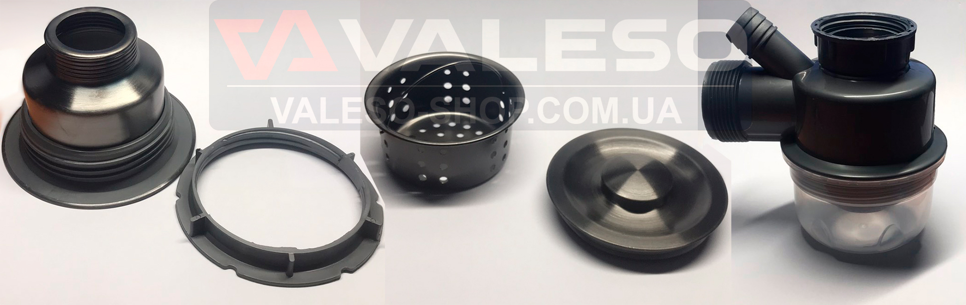 Зливний отвір круглої форми діаметром 90 мм розрахований на євросифон із горловиною 110 мм. Сифон входить до комплекту та оснащений ручним клапаном, сміттєзбірником, системою переливу й пляшковим гідрозатвором із прозорим відстійником, що дозволяє візуально контролювати рівень забруднення. Конструкція зливу виконана без центрального болта — герметичність забезпечується притискною різьбовою гайкою, яка рівномірно фіксує ущільнювачі по всьому контуру.