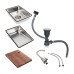 У комплект входять: змішувач, дві корзини для миття і сушіння, дерев’яна обробна дошка, а також сифон і кріплення для легкого встановлення.