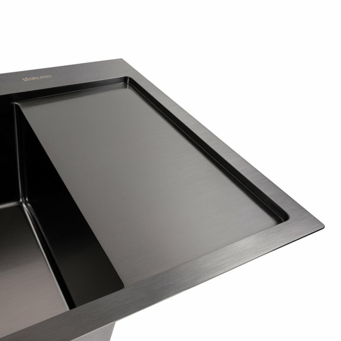 Valeso Handmade 58x48 L (3,0/0,8) CM, PVD Черный|Врезная раковина с площадкой для посуды 58 на 43 см